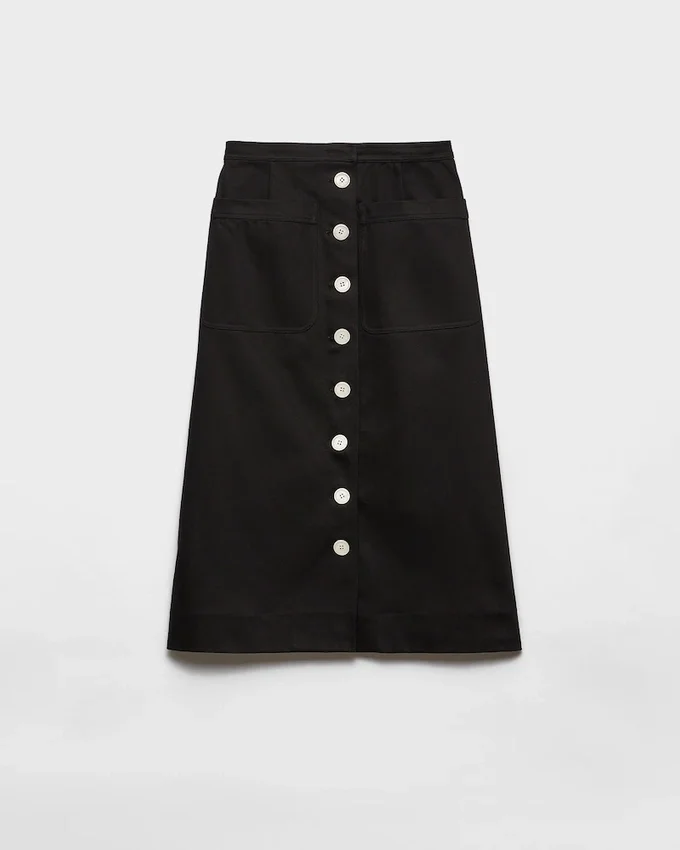 Precise Geometric Shapes Create the Silhouette of This Cotton Drill Skirt with Casual Style. The Buttons in a Contrasting Color Emphasize the Minimalist Lines of the Design.