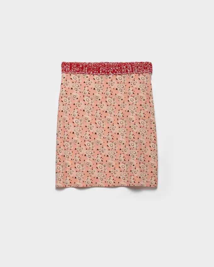 The Delicate Lightness of Georgette Defines This Pencil Skirt Embellished with a Romantic Floral Print. With an Interplay of Unexpected Textures and Combinations, the Knit Detail Completes the Design with a Modernist Note.