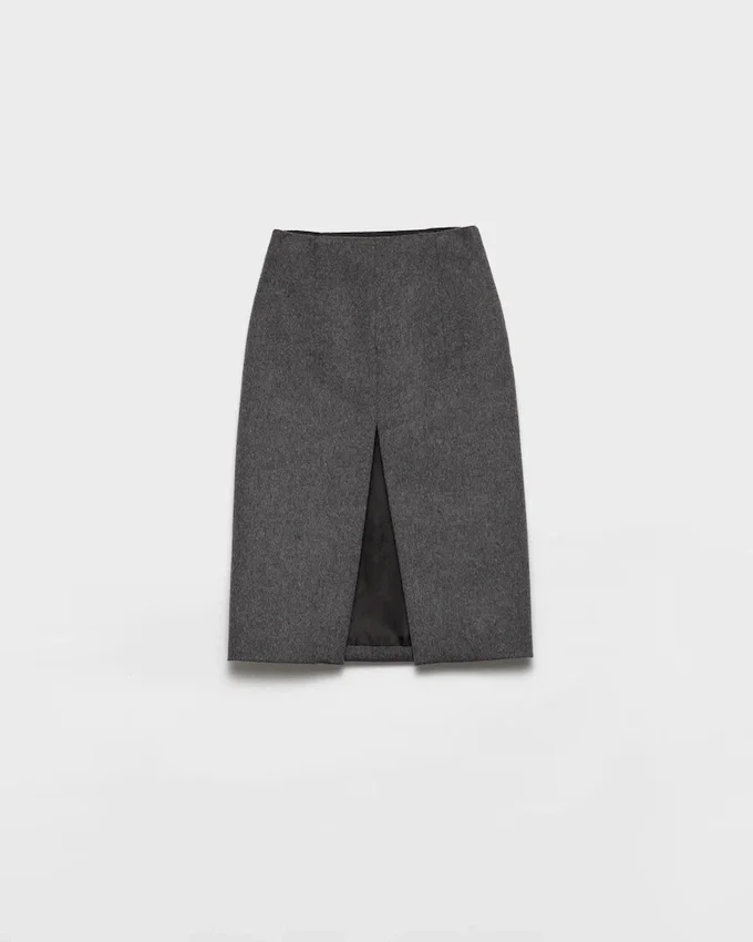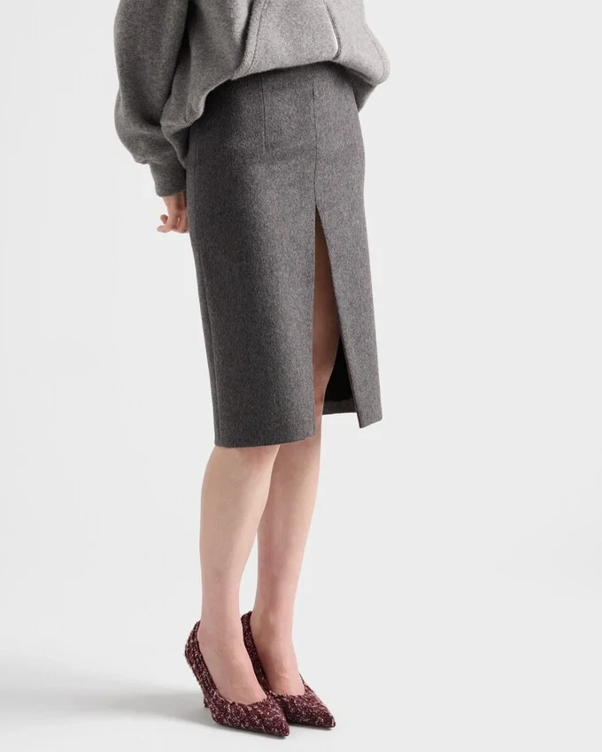 With Its Mix of Unexpected Materials, This Pencil Skirt Has a Hybrid Design Blending Femininity and Sartorial Rigor. Loden Fabric, with Its Structured Texture, Accentuates the Strong Lines of the Style Defined by a Deep Slit on the Front.