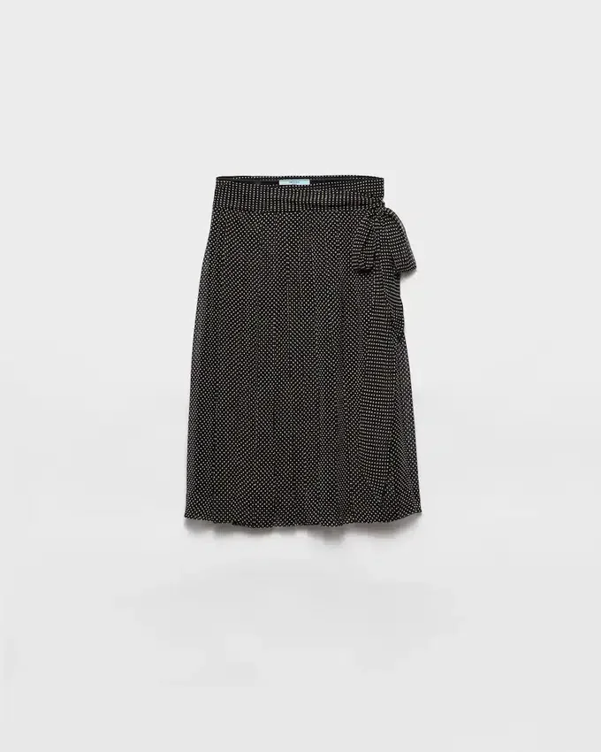 Sophisticated Lines and Details with Vintage Charm Define This Printed Chiffon Skirt. The Wrap Style is Enriched with Pleating on the Front That Adds Movement to the Silhouette.