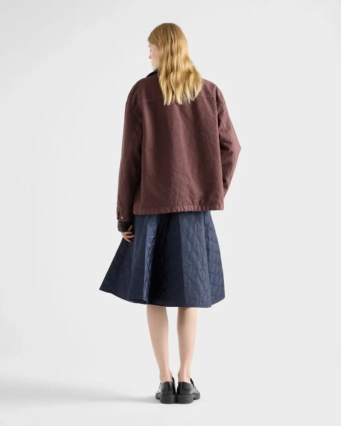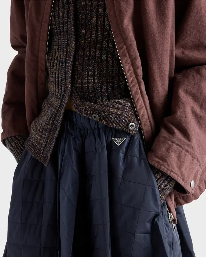 Volume and Lightness Interact with the Innovative Design. The Metal Triangle Logo and Functional Pockets Reveal a New Idea of Urban Femininity. For Sustainable Care to Preserve the Product’s Characteristics and Reduce Microfiber Shedding, We Recommend Not Washing the Item Too Often. Let the Product Air out After Every Use and Follow the Washing Instructions on the Label.