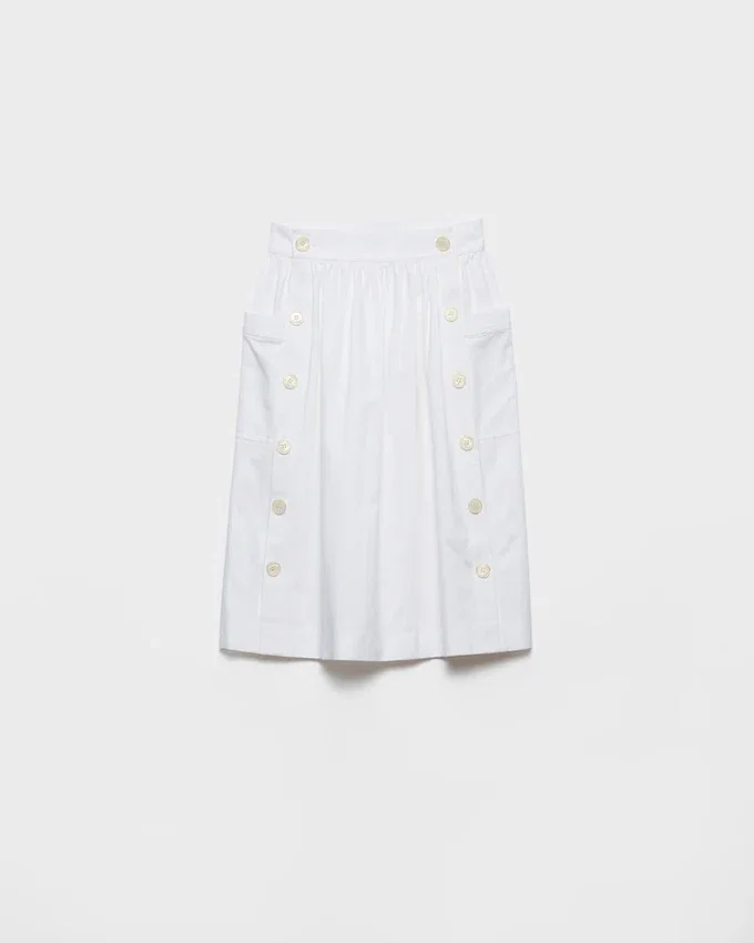 This Skirt Inspired by an Apron Silhouette Combines Details with Vintage Charm and Romantic Notes. The Gabardine Garment Has a Light Texture That Emphasizes the Delicate Sophistication of the Design.