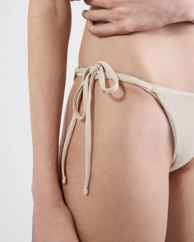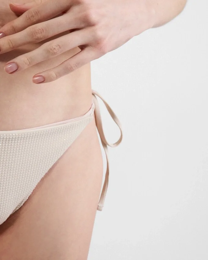 This Hipster Bikini Bottom with a Sleek, Contemporary Design is Defined by the Side Ties and the Sparkling Tonal Rhinestone Embellishment. For Sustainable Care to Preserve the Product’s Characteristics and Reduce Microfiber Shedding, We Recommend Not Washing the Item Too Often. Let the Product Air out After Every Use and Have It Dry Cleaned at a Specialized Ecological Dry Cleaners.