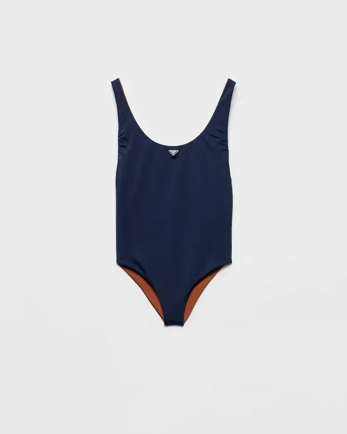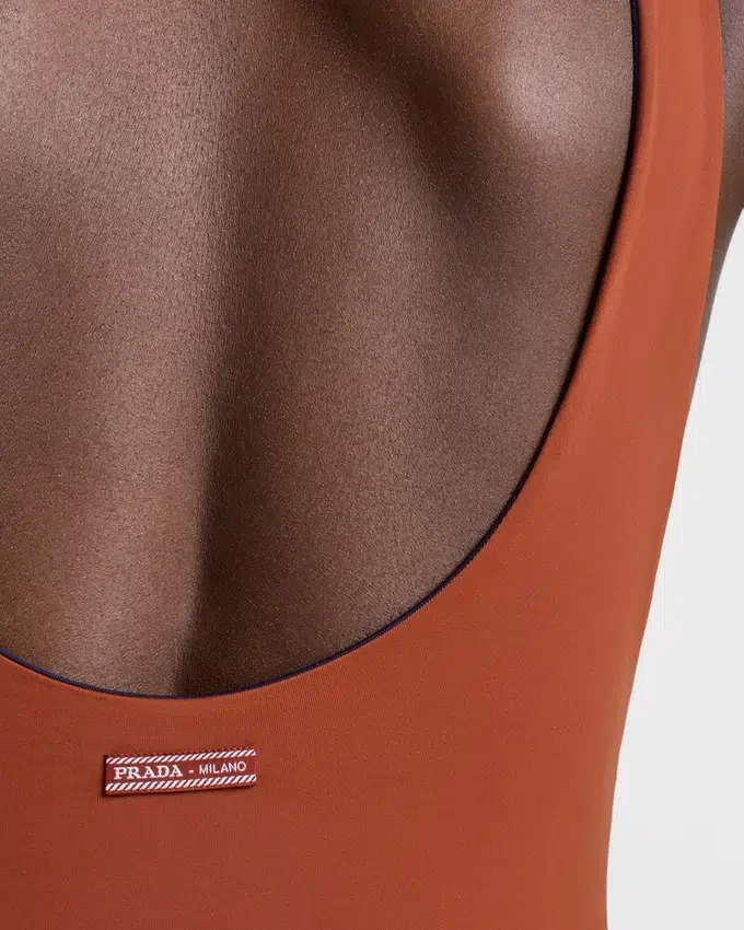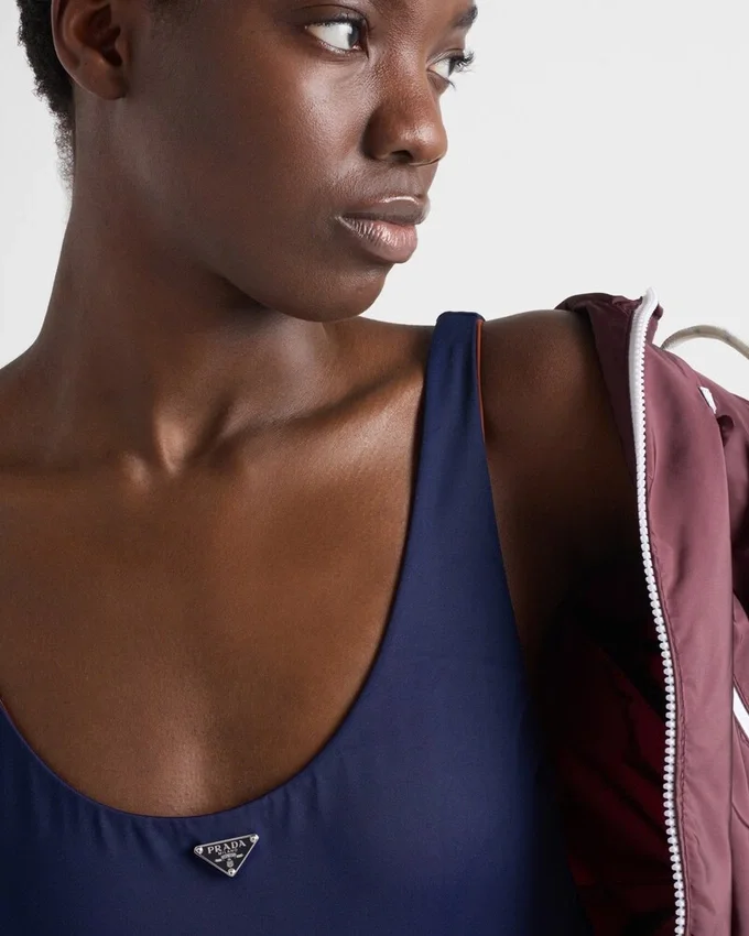 This One-Piece Jersey Swimsuit Has a Minimalist, Contemporary Design Decorated with the Enameled Metal Triangle Logo. For Sustainable Care to Preserve the Product’s Characteristics and Reduce Microfiber Shedding, We Recommend Not Washing the Item Too Often. Let the Product Air out After Every Use and Have It Dry Cleaned at a Specialized Ecological Dry Cleaners.