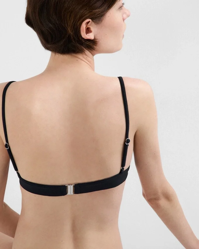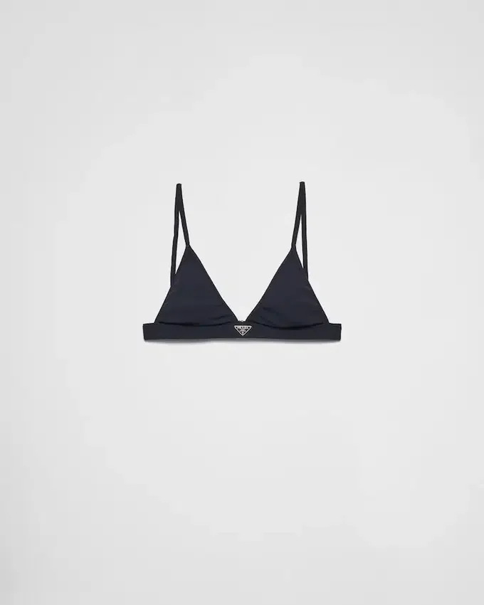 This Bralette Bikini Top Features a Sleek Design Defined by Thin Straps and Enriched with the Ribbed Knit. The Enameled Metal Triangle Logo Enhances the Style, Adding an Iconic Note. For Sustainable Care to Preserve the Product’s Characteristics and Reduce Microfiber Shedding, We Recommend Not Washing the Item Too Often. Let the Product Air out After Every Use and Have It Dry Cleaned at a Specialized Ecological Dry Cleaners.