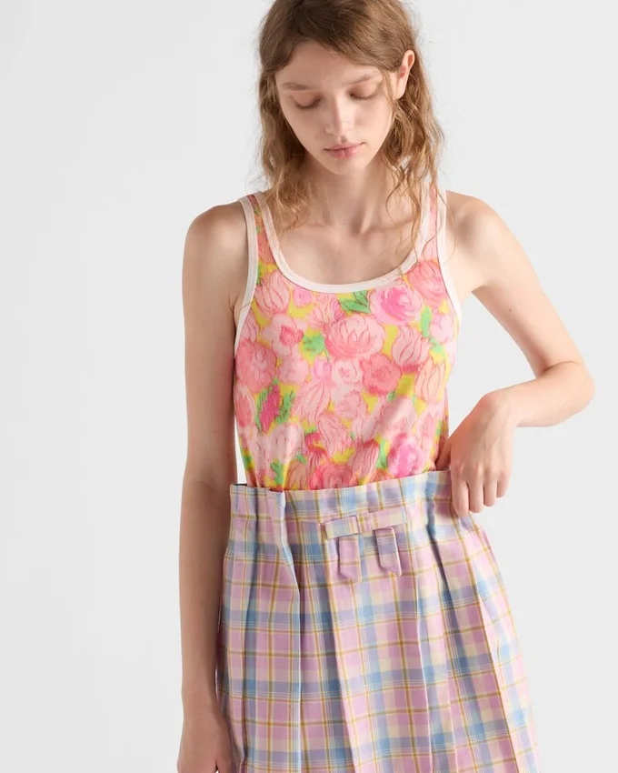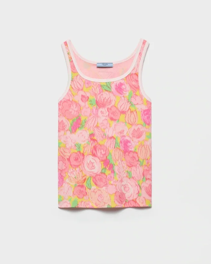 Made from Ribbed Cotton, This Tank Top Features a Slim-Fit Silhouette. The Essential Piece is Enhanced by a Vibrant Floral Print with Blurred Edges, Giving It a Refined and Distinctive Character.