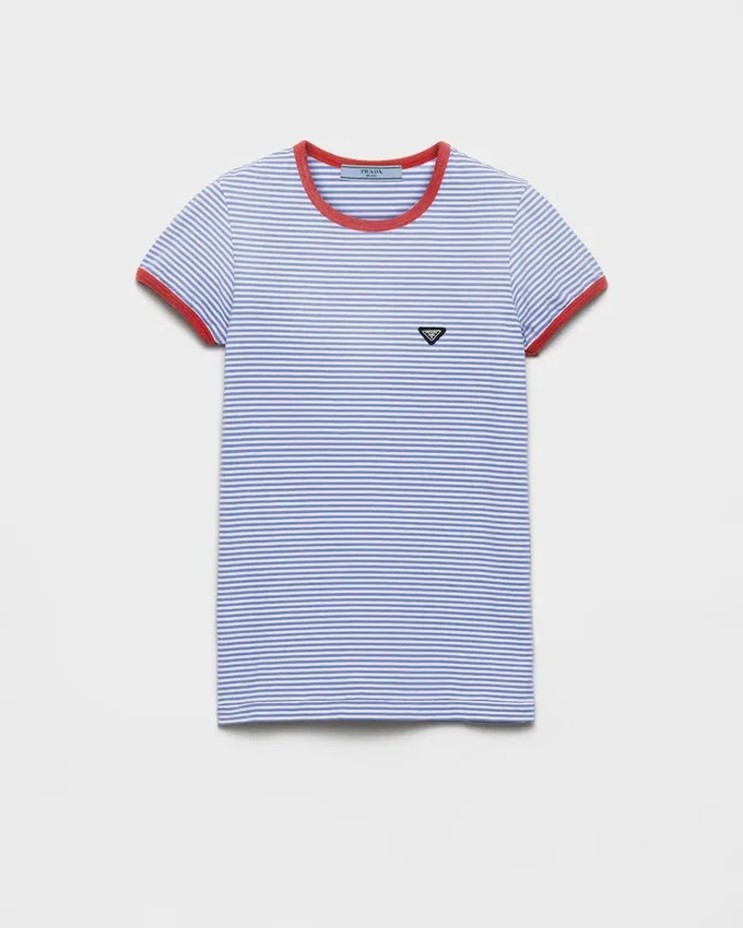 This Striped Jersey Tee Has a Slim Silhouette and is Decorated with the Metal Triangle Logo.