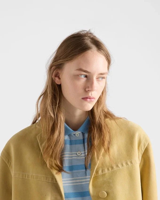 The Classic Polo Shirt Design is Reimagined with New Details and Decorative Elements. The Drawstring Hem Lets One Personalize the Silhouette, While the Fabric Triangle Logo Becomes a Distinctive Signature Touch of the Garment.