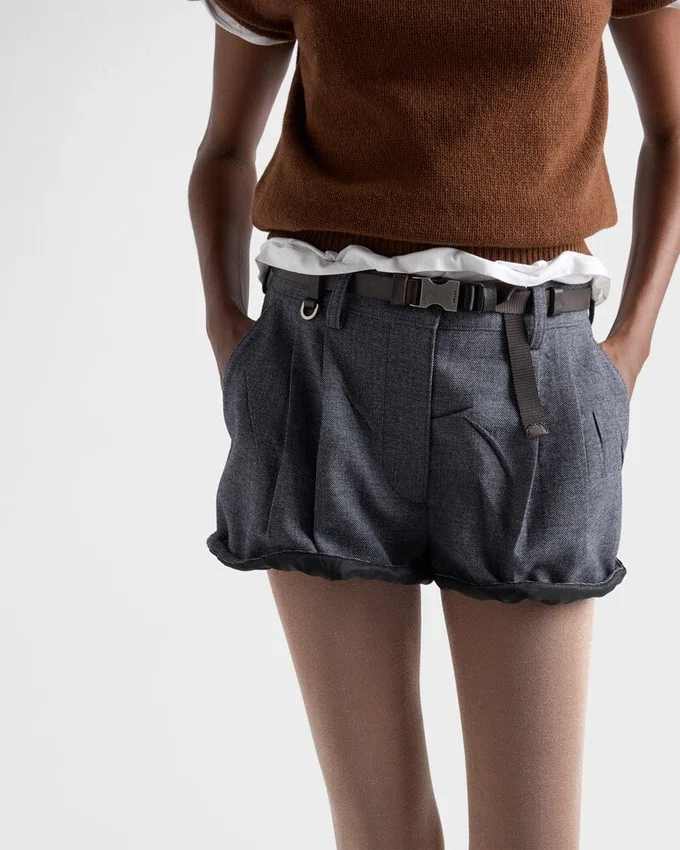 These Shorts with a Dynamic Design, Created with Movement in Mind, Embody Unconventional, Contemporary Style. The Tailored Silhouette Made of Grisaille is Animated with Shapeable Elements That Add a Unique and Unexpected Character to the Style.