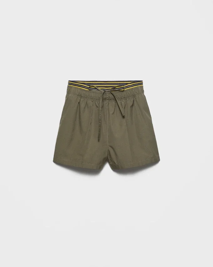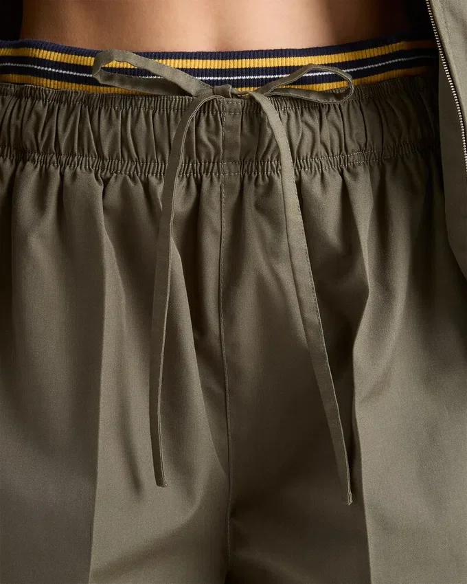 These Poplin Shorts Have a Light Silhouette and Relaxed Fit. The Design Plays with Layering, with a Striped Ribbed Knit Waistband That Adds an Alluring Contemporary Look.