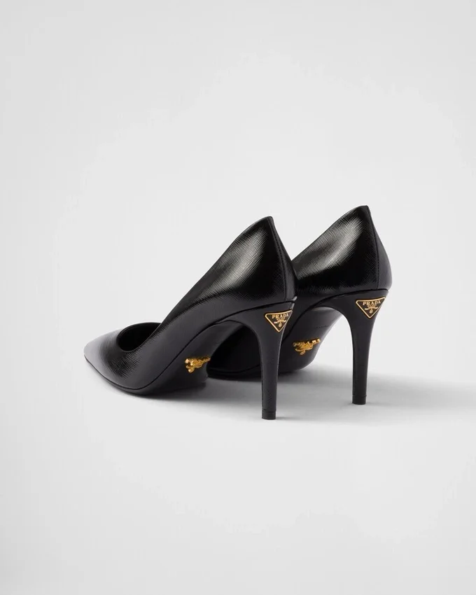 The Feminine Silhouette of These Pumps is Reinterpreted with Contemporary Details That Enhance the Design with Timeless Allure. Tapered Lines Define the Pointy Toe Shoe Enriched by the Exclusive Combination of Iconic Saffiano Leather and the Glossy Varnish Finish.